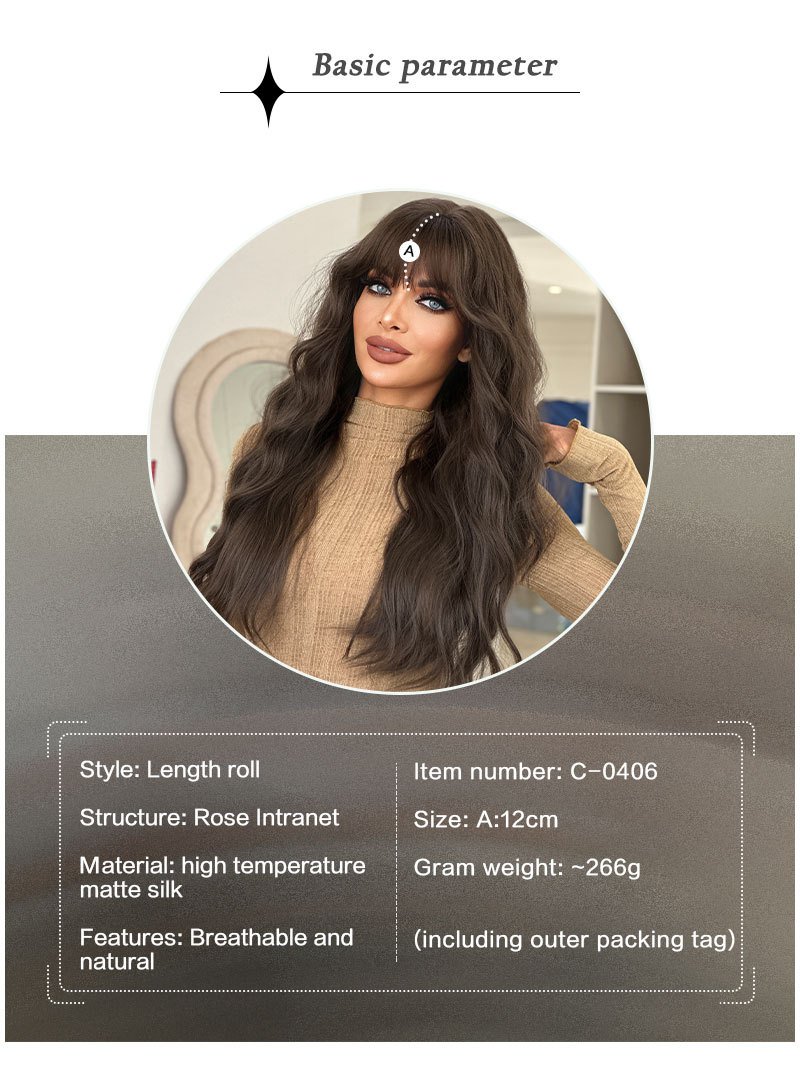 Model: Extra Long Curly Brown Wigs with Bangs Fake Hair