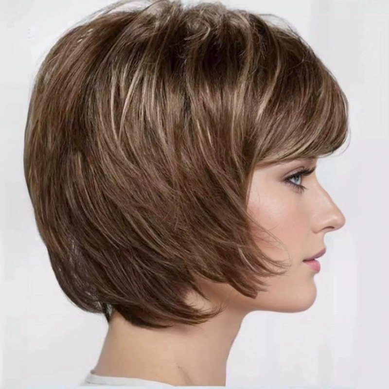 Wig Short Straight Fluffy Short Bangs Dark Brown Women's Wig Short Curly Hair