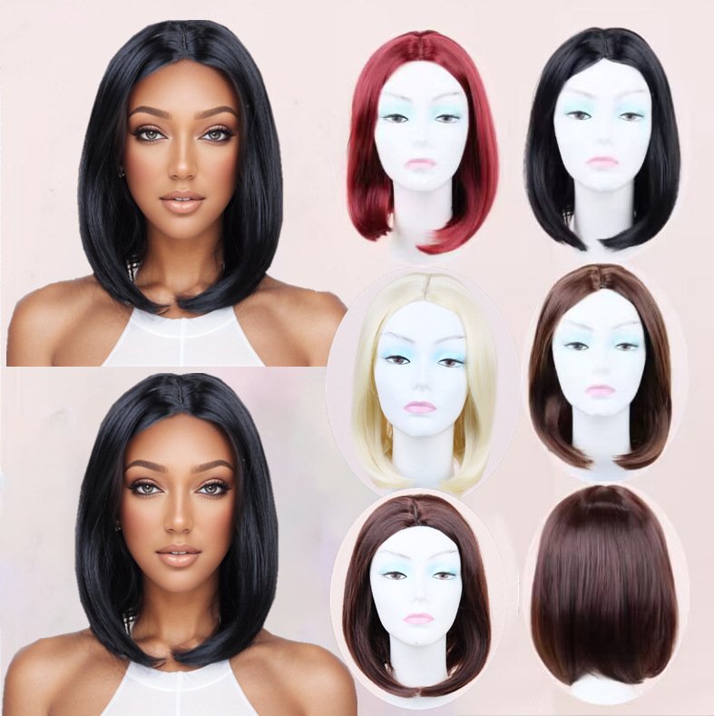 Wig Women’s Black Short Straight Hair Mid-split bobo Head Chemical Fiber Headgear Short hair
