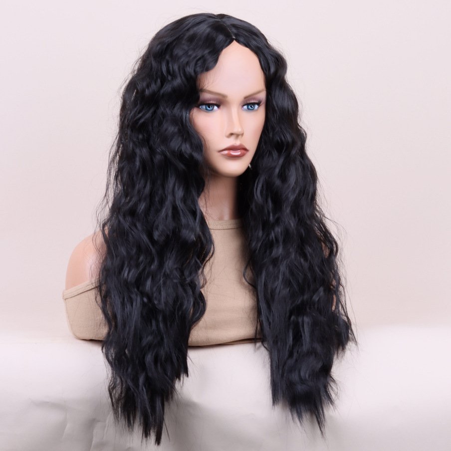 Wig Women’s Black Small Roll Wave Fiber High Temperature Resistant Wig Hair Coil Corn Whare
