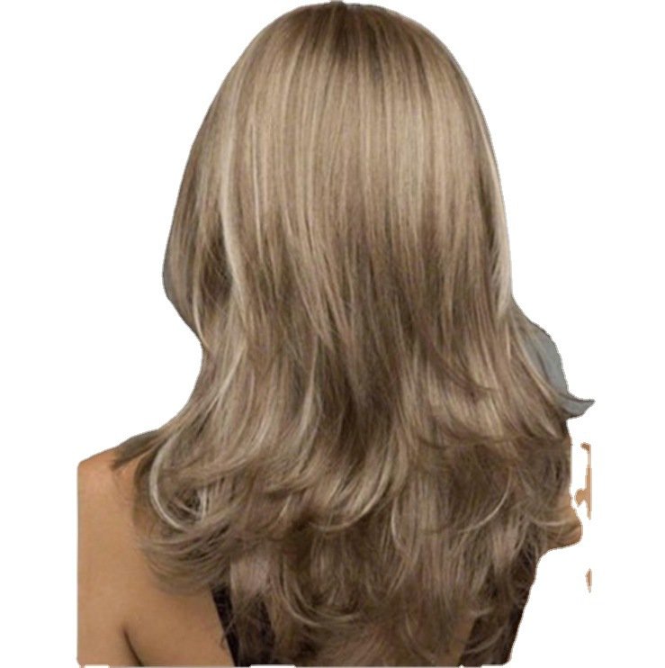 Wig Women’s Brown Gradient Hairstyle Coil Mid-point Hair Rose Net