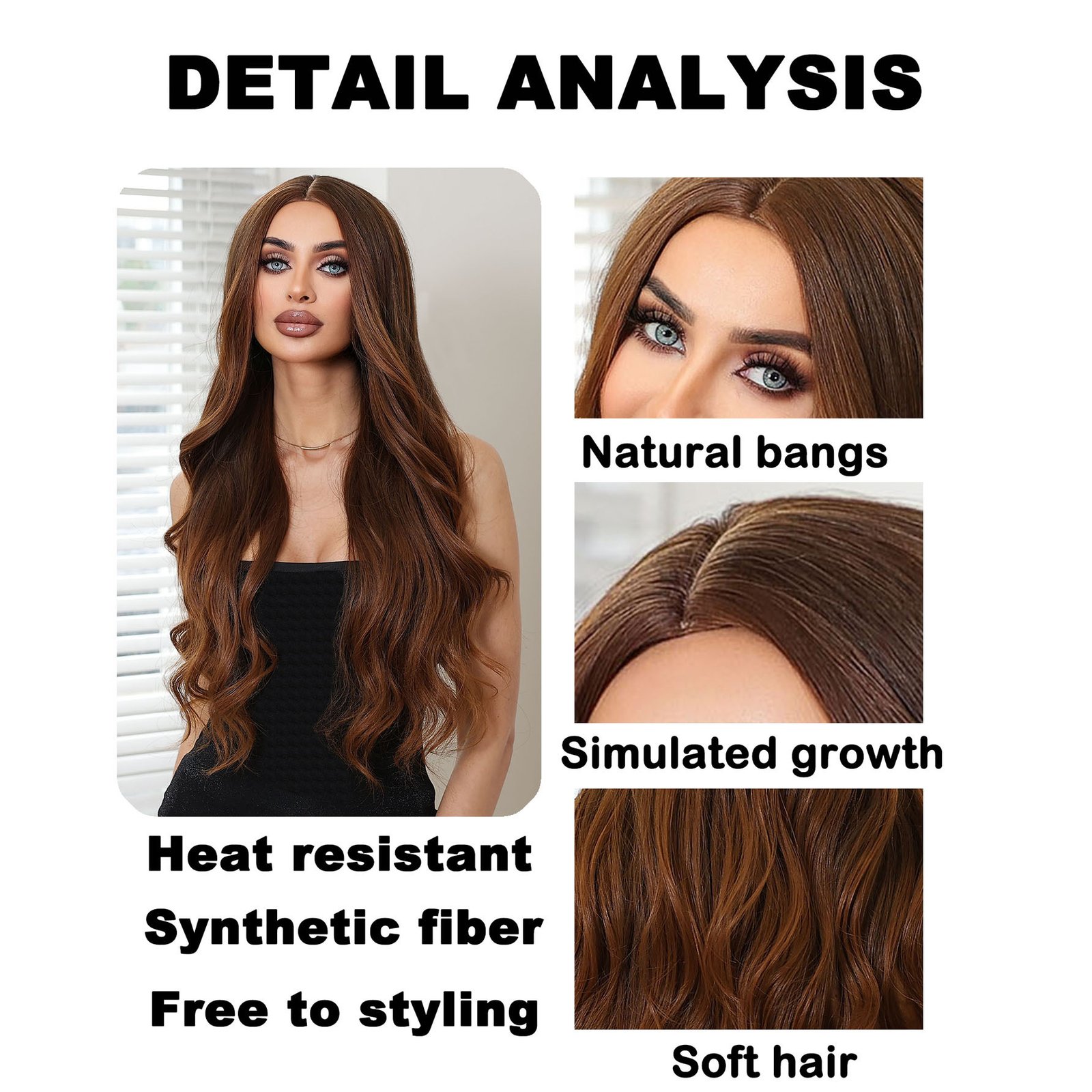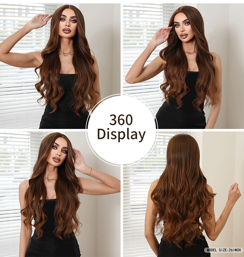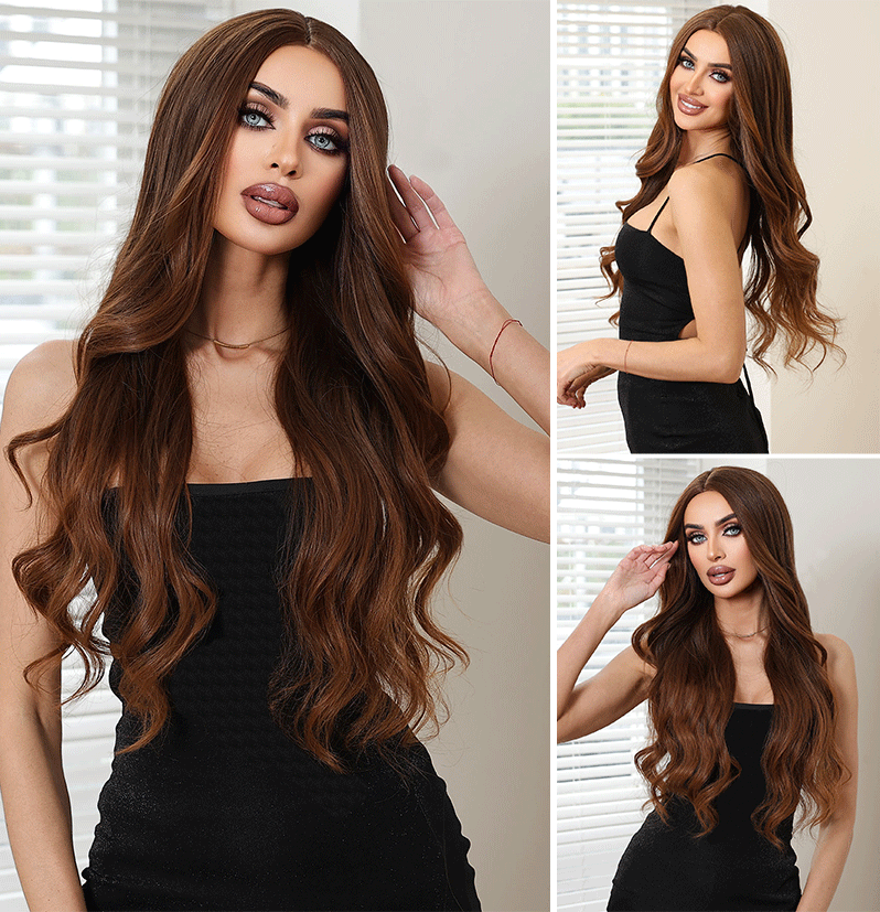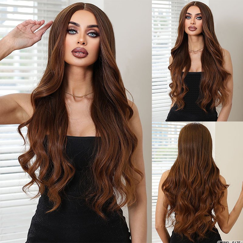 Wig Women's Medium Large Wave Long Curly Hair Fashion Gradient Brown Chemical Fiber Full Head Wig