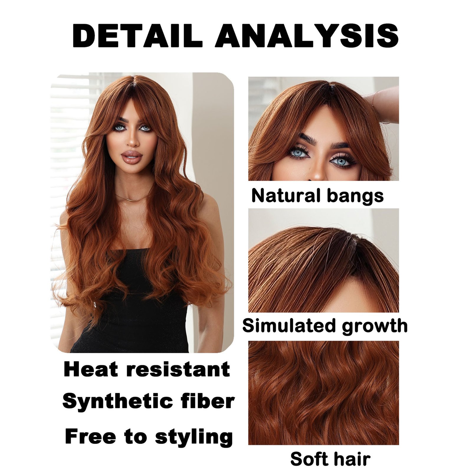 Wig Women’s Eight-character Bangs Brown Large Wave Long Curly Hair Daily Mechanism Chemical Fiber Full Head Cover