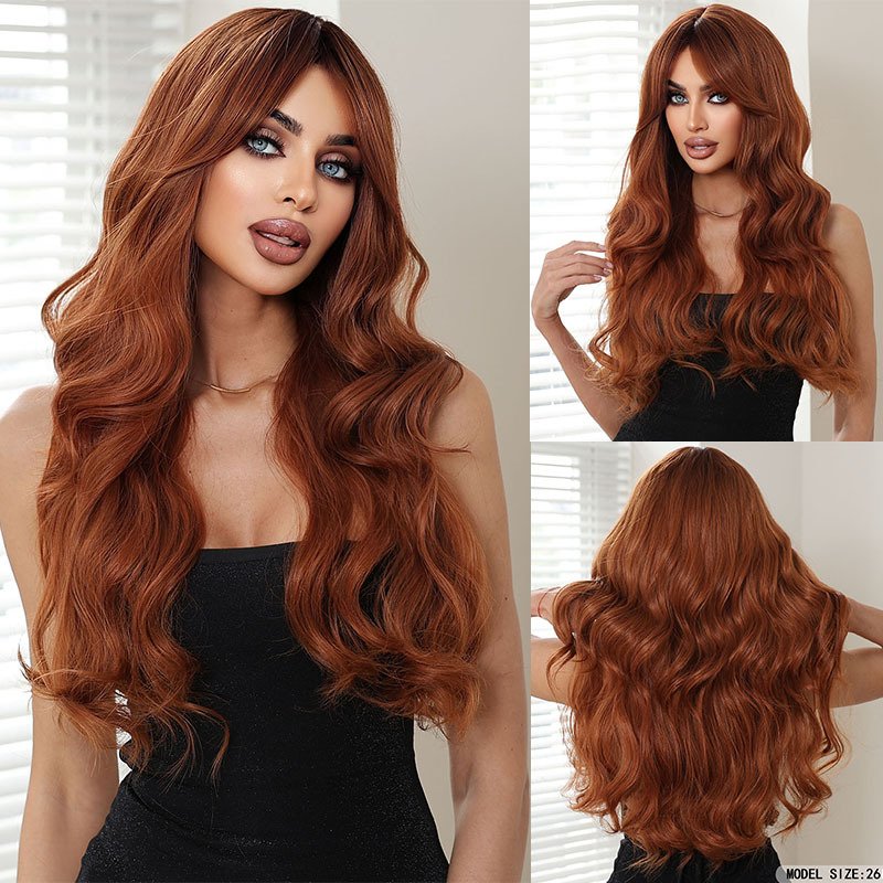 New Black and Brown Spotted Wig Women's Mid-point Large Wave Long Curly Hair Full Head Cover