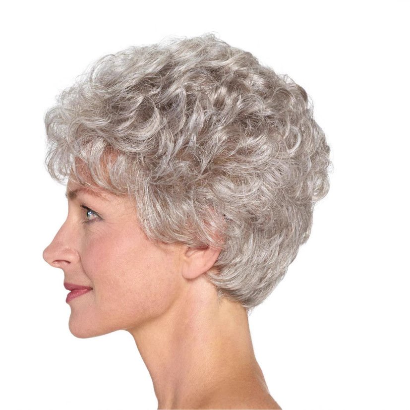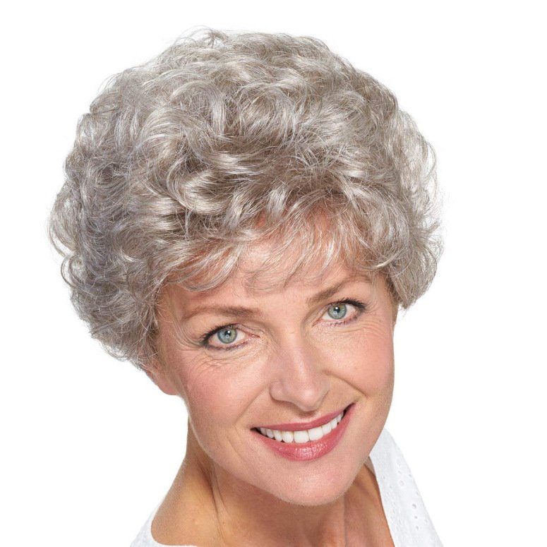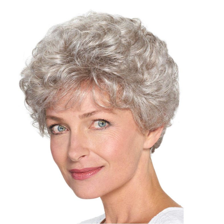 Wig Women’s Gray Gradient Wig Rose Mesh Fluffy Wig Chemical Fiber High Temperature Silk Hole Cover