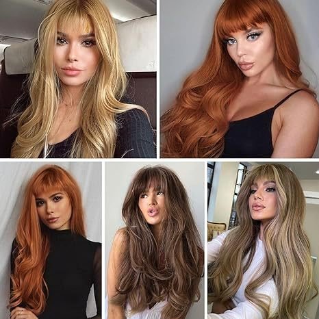 Be the first to review “Women’s air bangs orange big wave long curly hair chemical fiber headgear wig”