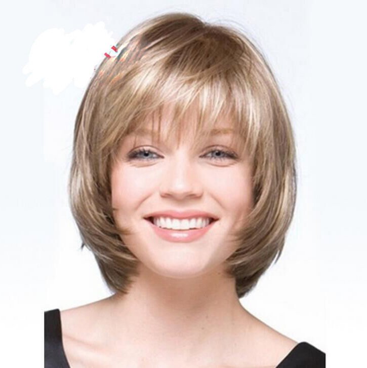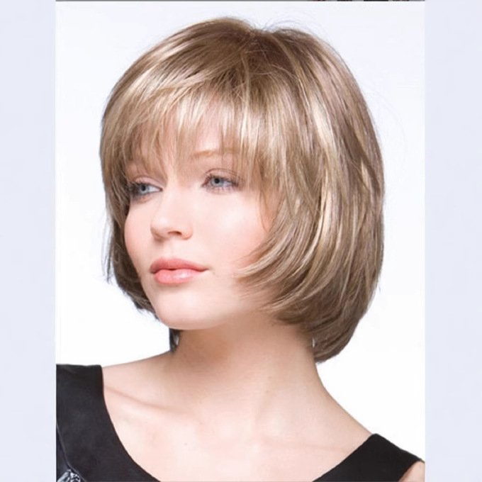 Wig Short Straight Fluffy Short Bangs Dark Brown Women’s Wig Short Curly Hair