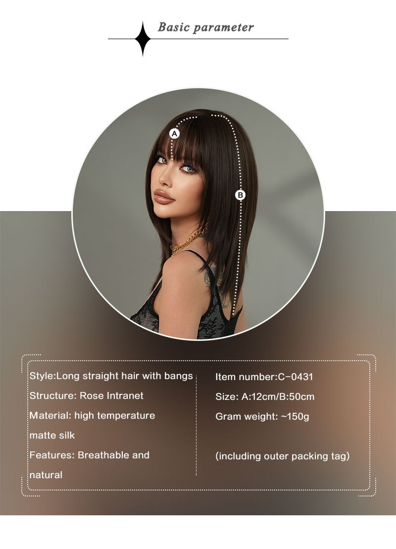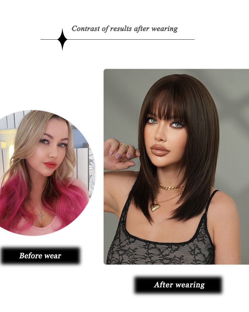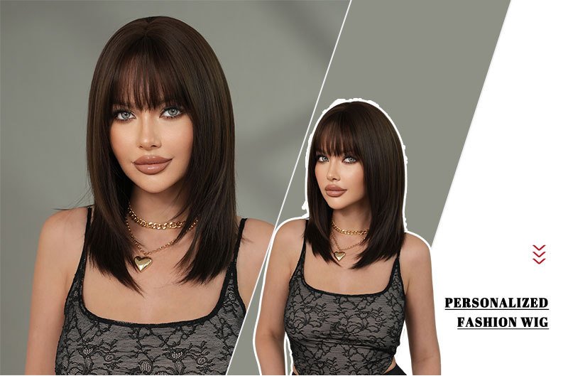 Women’s Wig Chest Black Brown High Level Straight Hair Air Bangs Mid-length High Quality Wig Full Top
