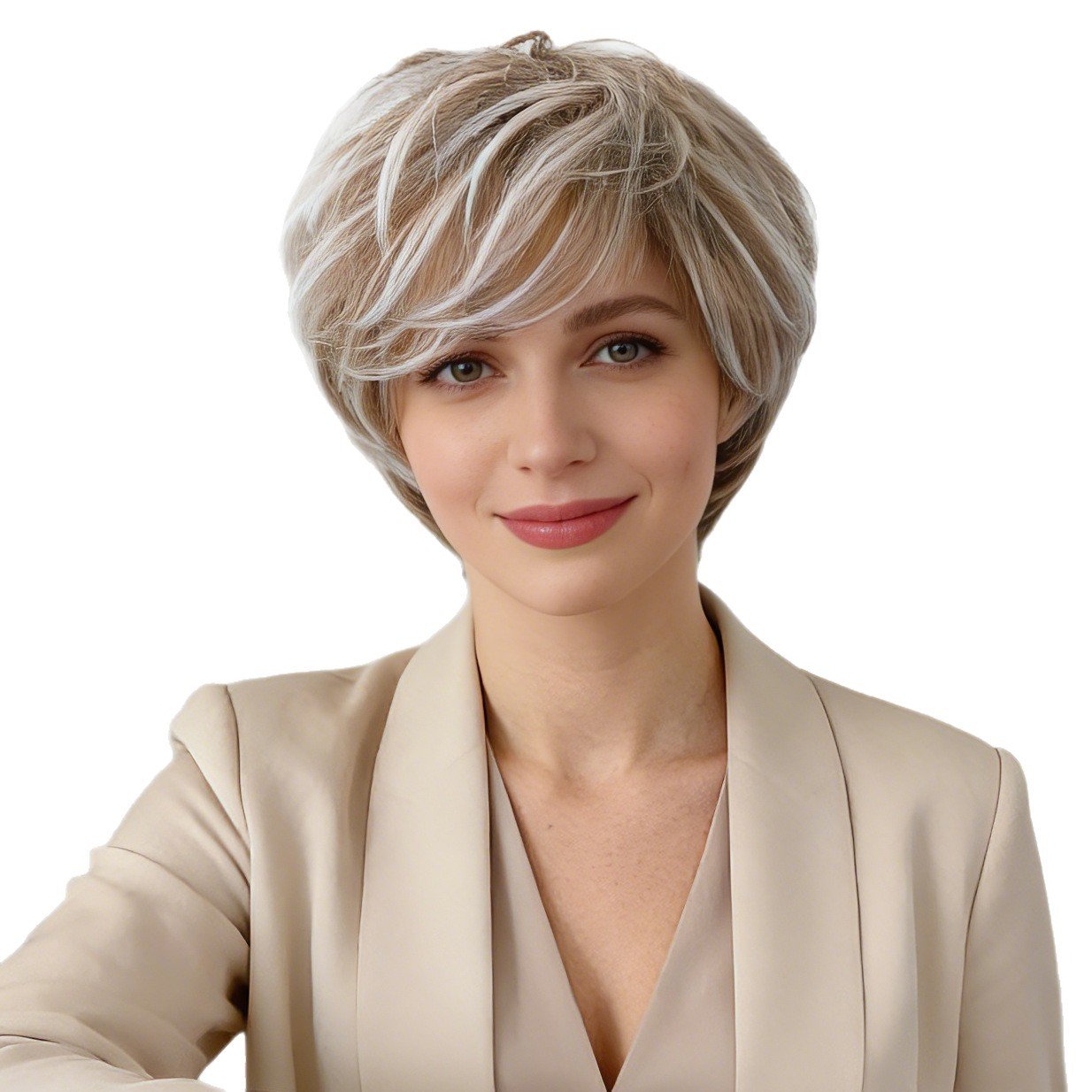 Women’s Wig European and American Fashion Short Straight Hair Gradient Color-highlighting Chemical Fiber Headgear