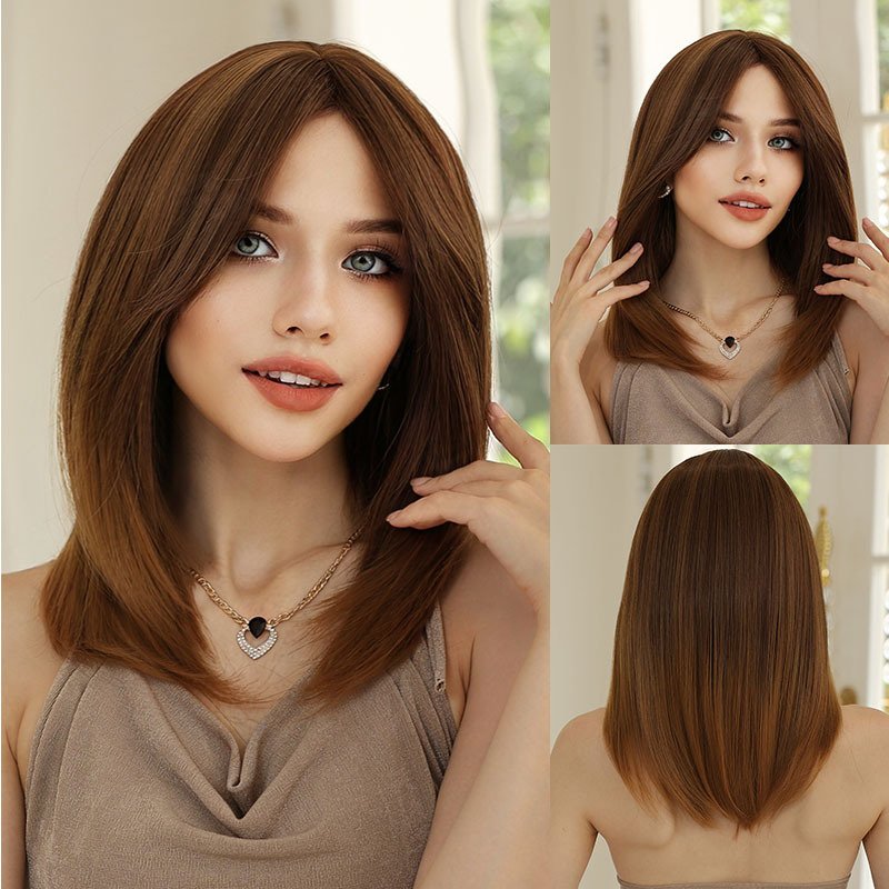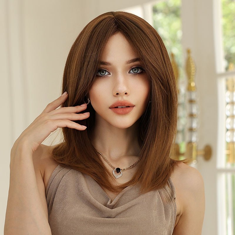 Exquisite Shoulder-Length Synthetic Wig – Fashionable Daily Wear