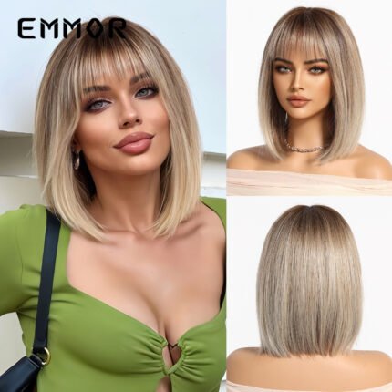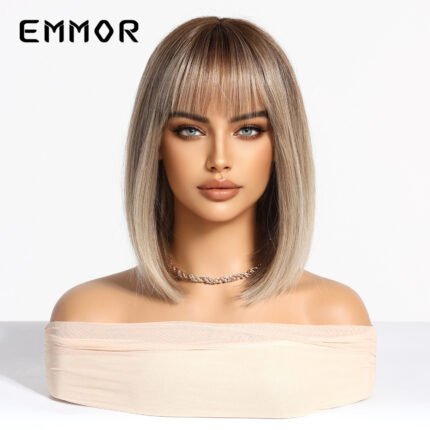 Spring and summer hot selling natural breathable bangs gradient gold short straight hair bob European and American style wig full head hairstyle wigs