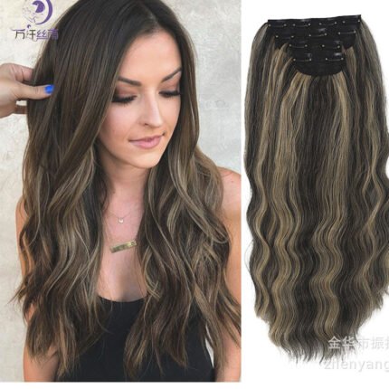 Wig 4 pieces of water corrugated hair patch European and American style high temperature silk brown 4 piece set of seamless hair patch