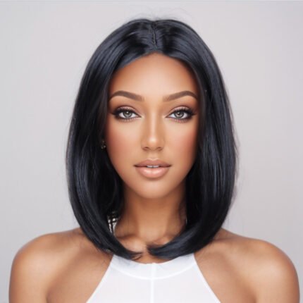 Wig Women’s Black Short Straight Hair Mid-split bobo Head Chemical Fiber Headgear Short hair