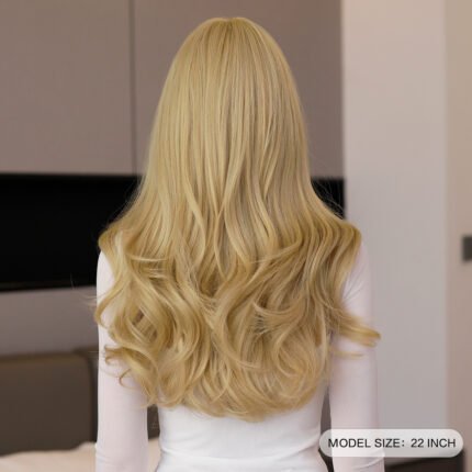 Women’s natural blonde long curly hair with neat bangs Taylor Swift blonde chemical fiber wig
