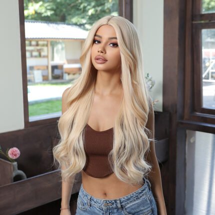 Premium 13×4 HD Lace Frontal Wig – Elegant Platinum Blonde Long Wavy Wig