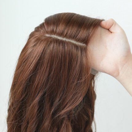 High quality brown small lace wig women forehead hand hook natural long curly hair large wave wig headgear